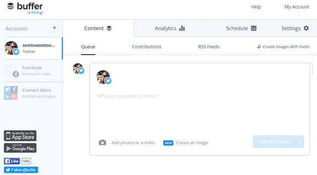 My love affair with Twitter ebbs and flows fairly dramatically. One day, I’m posting seven times a day, but then I’ll skip it for weeks at a time. However, no matter my limited consistency and limited following, I love the real time nature of the app – it’s perfect to drive a real time conversation! With that in mind, I have started timing my Tweets with Buffer. Thursday night is my first go-live night, but I’m looking forward to it keeping me on track and engaged. (Be sure to be following me on Twitter to see what all the fuss is about!)
