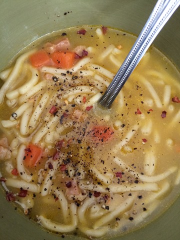 We didn’t have much food left in the house following our weekend away, but I wanted something on the healthy side. Low Sodium Chicken Noodle Soup fit the bill. Added a little pepper and crushed red pepper and we were off to the races. Thanks, Campbells! #NotSponsored