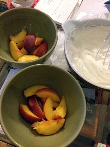 Lately, the peaches in the area have been a wonderful treat, and this was no different. We enjoyed our peaches with a side of Cool Whip and some Sleepy Time Tea. The perfect treat to end the day.