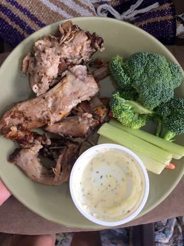 After busting through updating a couple of posts and scheduling social media, I was ready to take a break. This leftover pork was delicious from a picnic I had attended on Sunday. (I ate about 3/4 of the pictured.) The veggies and tiny bit of dip were leftover from the Olympic Opening Ceremonies get-together we hosted the previous Friday. Both were delicious and much healthier than other options we had ready to go in our home.