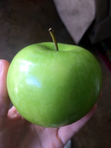 Nothing to crafty here. Just a simple green apple to up my energy levels a bit. I also knew that I would have a while until my next meal, so I added in a handful of baked chips with hummus.